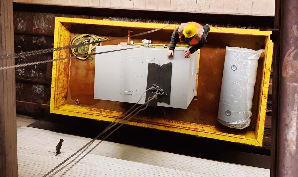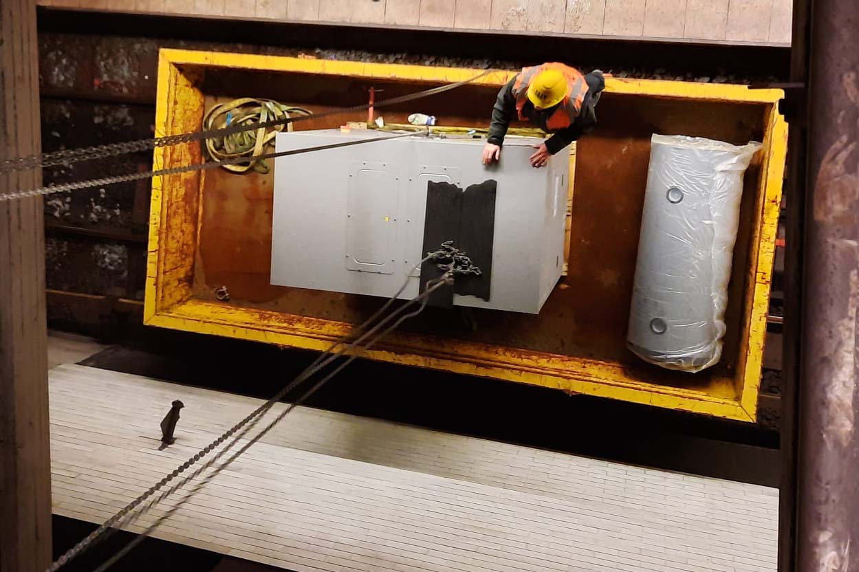 However, installing this system required some special operations. For example, we drove the chiller on a metro chassis underneath the structure of steel beams on which it had to be placed, and then hoisted it into position. The cooling equipment for the different rooms was also transported using several transport methods to the platform, after which it was lifted through a hatch in the ceiling into the rooms above.